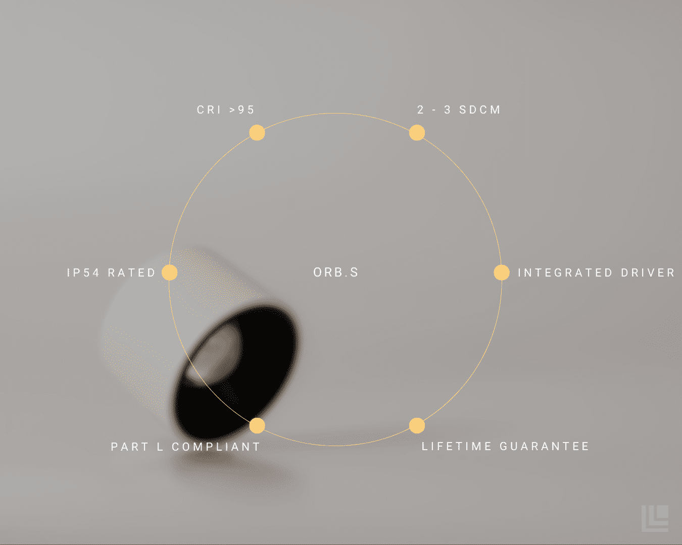 The Orb.S is a beautifully designed and compact surface-mounted spotlight. Its crystal lens provides a soft, gradient beam of light with a 35° angle, making it perfect for highlighting key design features.