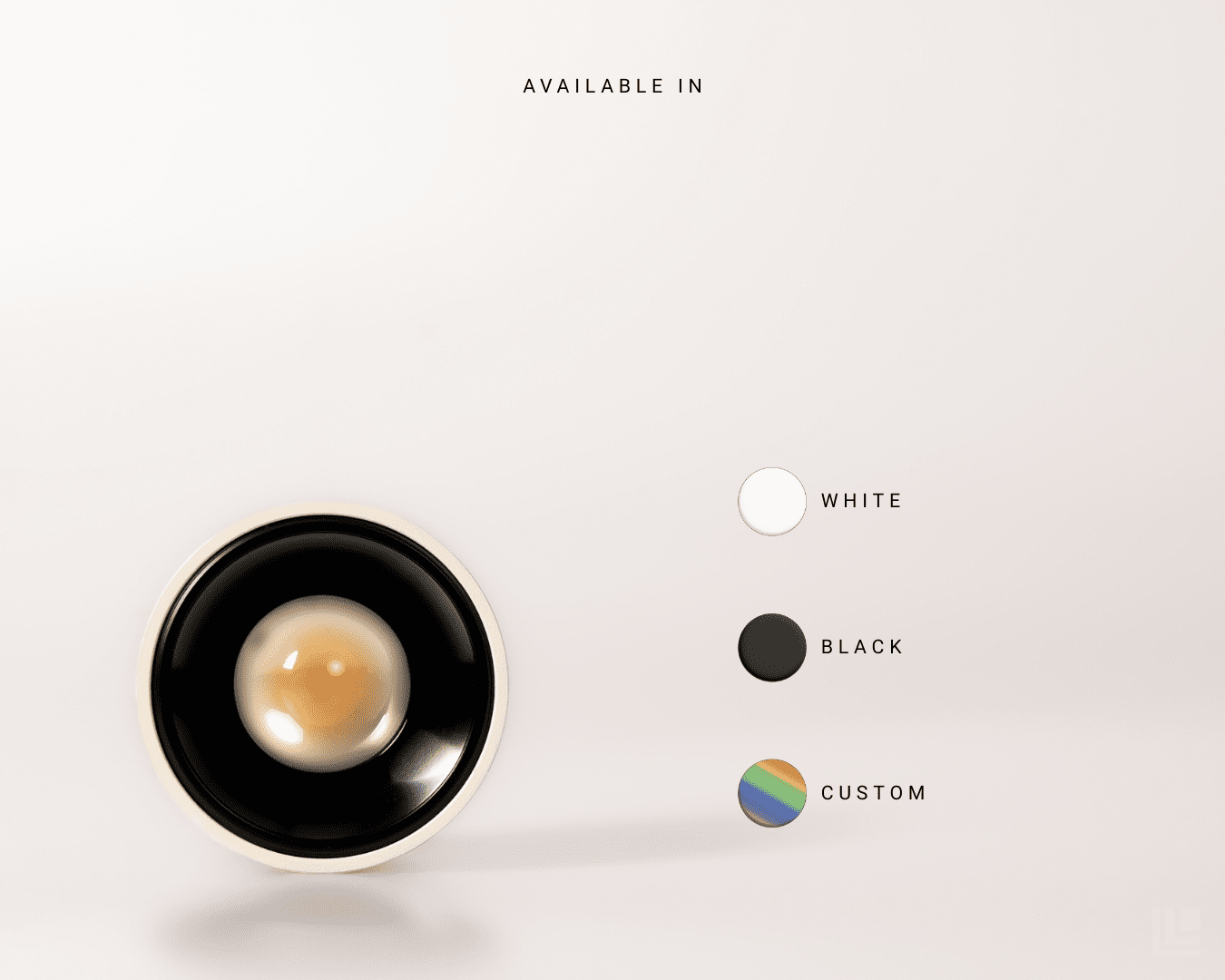 The fitting is available in black, white, or a custom colour, allowing it to blend seamlessly into any interior space.